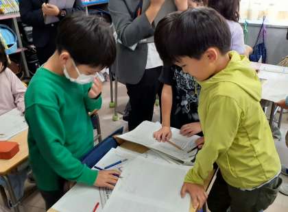 発展問題は、自分だけでとく、友達と一緒にとく、先生に聞くの3つから選んで挑戦しました。姿勢よく話を聞いて、ノートに書く作業がとても早くなり、成長を感じました。