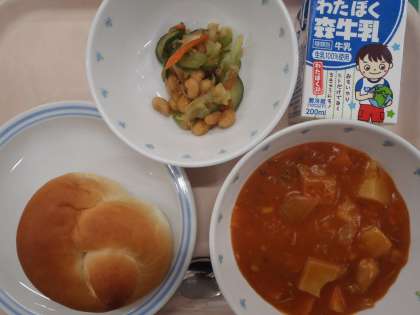 10月24日の給食 公開日 2023/10/24 更新日 2023/10/24 給食 ・ミルクパン ・トマトシチュー ・大豆とじゃこのサラダ ・牛乳 にんにく(青森) 玉ねぎ(北海道) セロリー(長野) 鶏肉(宮崎) にんじん・じゃがいも(北海道) パセリ・キャベツ(長野) きゅうり(群馬) しょうが(高知) 長ねぎ(東京) 今日はほんのり甘みのあるミルクパンとトマトのシチューです。シチューはトマト缶を使用しますが、じっくり煮込むことで酸味がまろやかなシチューに仕上がります。 いいね(0)