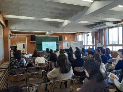 はじめに栄養士の講演、その後、2年生の教室で会食をしました。メニューは子どもたちの大好きなジャンボ餃子。おいしい、と喜んでいただきました。