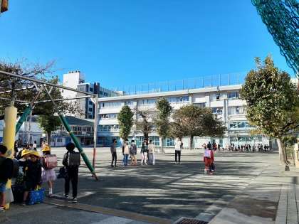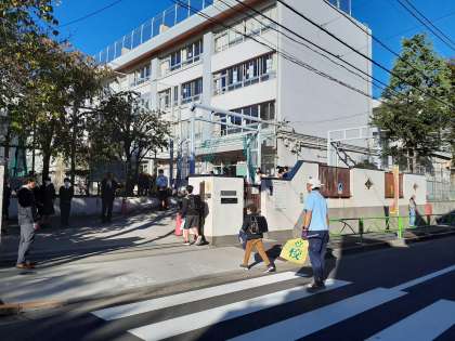 照れている子もいますが、挨拶する人の顔をみて挨拶ができると気持ちいいね、と指導しています。