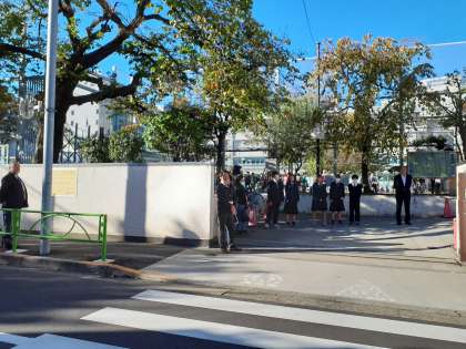 十中校区の挨拶運動が始まりました。地域の方々、東根小を卒業した十中生、そして東根の6年生が校門や学校周辺、校庭に立ち、子どもたちに挨拶をしてくれています。