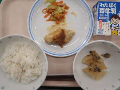 ・ごはん ・魚の香味揚げ ・ゆで野菜のレモン醤油かけ ふろふき大根 ・牛乳