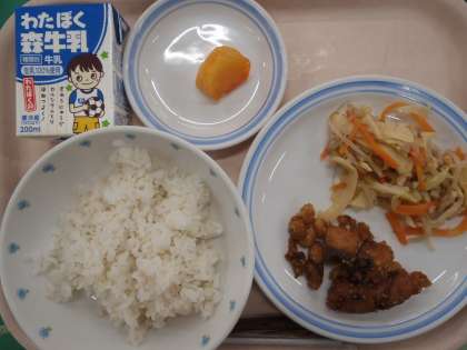 11月27日の給食 公開日 2023/11/27 更新日 2023/11/27 給食 ・ごはん ・かつおのごまみそ揚げ ・肉と野菜の炒めもの ・果物(柿) ・牛乳 かつお(宮城) しょうが(高知) にんにく(青森) 豚肉(宮崎) にんじん(千葉) たけのこ(愛媛) キャベツ(愛知) もやし(栃木) 柿(山形) かつおはでん粉、小麦粉で衣をつけて唐揚げにして、甘辛い味噌だれに絡めました。お肉のような食感と風味で、かつおが食べやすくなります。 いいね(0)