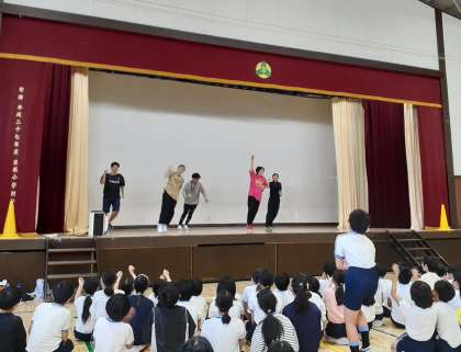 エンブレムの6名のダンサーに、5年生がダンスを教わりました。