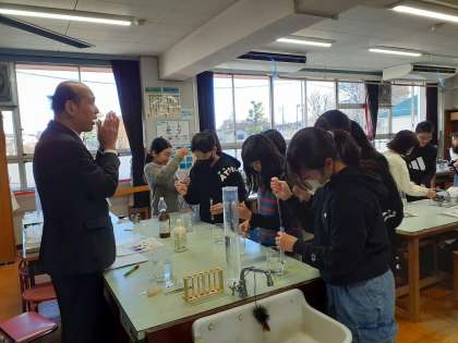 まずは、見た目に違いがあるか、臭いはどうか、その後、実験したい水溶液を一つ選んで、蒸発皿にとり、加熱した様子を観察しました。