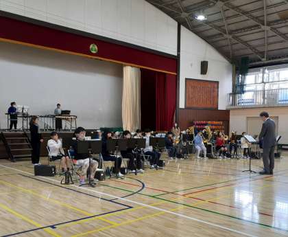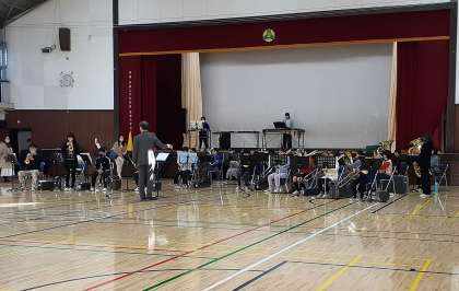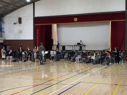 金管バンドは、18日のクリスマスコンサートに向けて練習をしています。今は、朝の時間に体育館で本番に向けて全体練習をしています。
