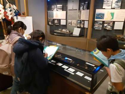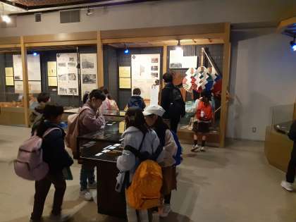 正門近くの展示室の見学では、昔使った道具が展示されていました。
