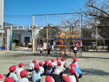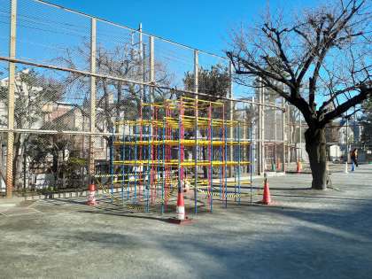 ジャングルジムが老朽化のため、取り壊しになり、1月から新しいジャングルジムが設置されました。
