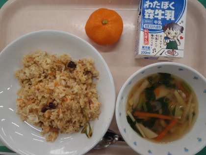 1月12日の給食 公開日 2024/01/12 更新日 2024/01/12 給食 ・タコとキムチのチャーハン ・トック入りスープ ・果物(みかん) ・牛乳 にんじん(千葉) たけのこ(熊本) 豚ひき肉(岩手) たこ(北海道) 長ねぎ(茨城) 鶏肉(岩手) 小松菜(埼玉) しょうが(高知) みかん(静岡) 今日は、韓国のおもち「トック」の入ったスープです。うるち米でできたお餅で、薄くスライスされています。もちもちの食感を楽しみながら食べてほしいと思います。 いいね(0)