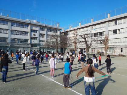 集会(縄跳び集会) 公開日 2024/01/18 更新日 2024/01/18 今日のできごと 1月18日(木曜日) 今日は1.3.6年生の縄跳び集会がありました。ジンギスカンの曲に合わせて、短なわを跳びます。委員会の6年生を手本に、リズムよく跳ぶ子がたくさんいました。 次回は、2.4.5年生が行います。 いいね(0)
