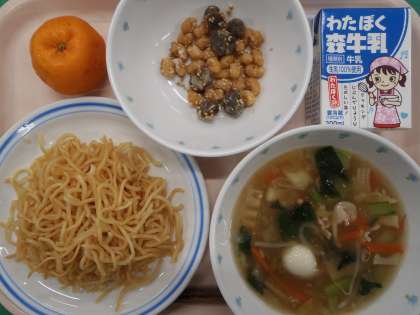 ・たんめん ・大豆とごぼうのごま揚げ ・果物(ぽんかん) ・牛乳