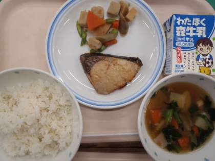 ・ごはん ぶりのゆず香り焼き ・高野豆腐と野菜の煮物 ・のっぺい汁 ・牛乳