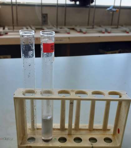 塩酸にアルミニウムを溶かすとどうなるか、を実験しました。塩酸を使った実験ということで、緊張しながらも、興味津々な様子で実験に取り組んでいました。