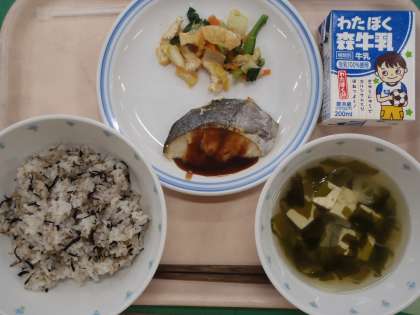 2月19日の給食 公開日 2024/02/19 更新日 2024/02/19 給食 ・ひじきとじゃこのごはん ・鰆の辛みそ焼き ・白菜の煮浸し ・すまし汁 ・牛乳 サワラ(韓国) しょうが(高知) 小松菜(埼玉) にんじん(千葉) 白菜(茨城) じゃがいも(鹿児島) 長ねぎ(茨城) 辛みそ焼きは、テンメンジャンやトウバンジャンをみそと合わせてソースにして、サワラを焼いて、上からかけました。 和食の献立ですので、三角食べをしてバランスの良い食事にしてほしいと思います。 いいね(0)