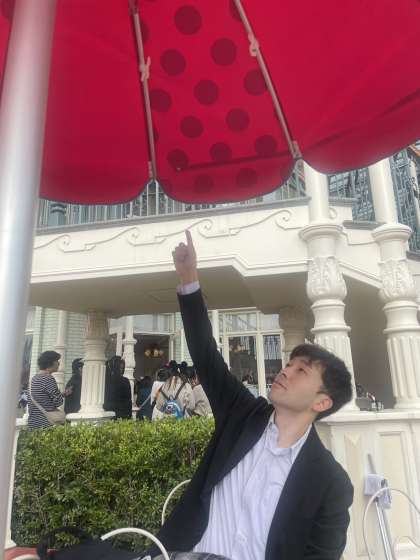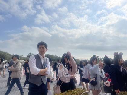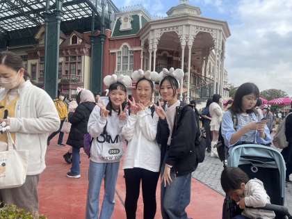 グループ行動なので、困ったときはパートナー像の前を本部としています。どのグループも楽しく回っていますが、人が多すぎて、見つけるのが大変です。