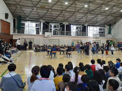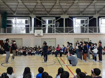 6年生を送る会では、各学年から、お祝いの出し物を披露しました。