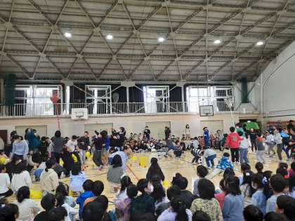 2年生は、チェッコリ玉入れで6年生に挑みました。