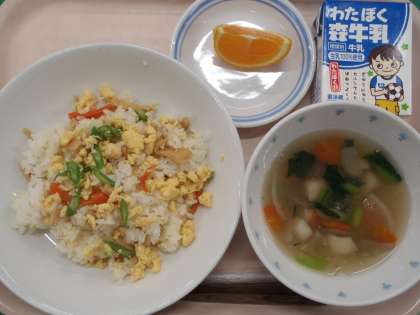 3月1日の給食 公開日 2024/03/01 更新日 2024/03/01 給食 ・五目ずし ・タラと根菜のうすくず汁 ・果物(清見オレンジ) ・牛乳 にんじん(千葉) 卵(青森) さやいんげん(沖縄) 大根(千葉) ごぼう(青森) タラ(アメリカ) 小松菜(埼玉) 清見オレンジ(愛媛) 明後日の3日は桃の節句、ひな祭りです。給食では、皆さんの健やかな成長を願い、ごもくずしを作りました。酸味を抑えた酢飯を作り、炒り卵やさやいんげんで彩良く仕上げました。 いいね(0)