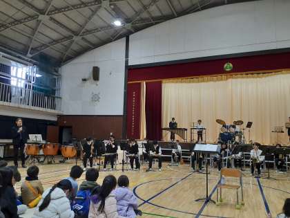 東根小学校の体育館で、金管バンドの定期演奏会がありました。