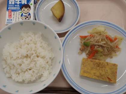 3月4日の給食 公開日 2024/03/04 更新日 2024/03/04 給食 ・ごはん ・じゃこと切干大根の卵焼き ・春雨の五目炒め ・さつまいもの甘煮 ・牛乳 にんじん(千葉) 卵(青森) 長ねぎ(埼玉) しょうが(高知) 豚肉(岩手) キャベツ(愛知) もやし(静岡) さつまいも(熊本) 卵焼きには切干大根やちりめんじゃこを加えてオーブンで焼きました。ちりめんじゃこはカルシウムが豊富な食材です。 いいね(0)