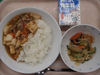 ・ごはん ・ジャージャンドウフ ・こんにゃくサラダ ・牛乳