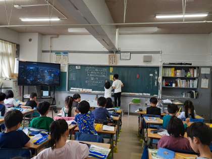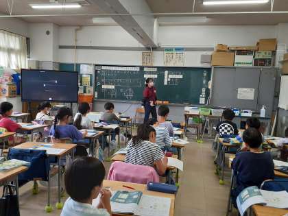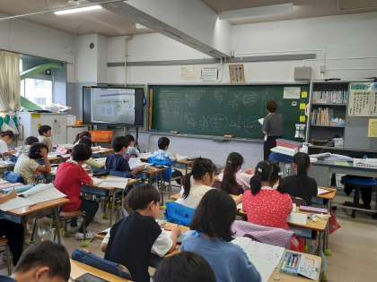2年生は2けたのたしざんの学習をしています。位に気をつけて、筆算をノートに書いていました。ブロックを使っても学習をしています。