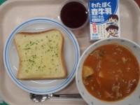 ・ごはん ・魚の梅ごま焼き ・野菜のしょうが醤油かけ ・みそ汁 ・牛乳