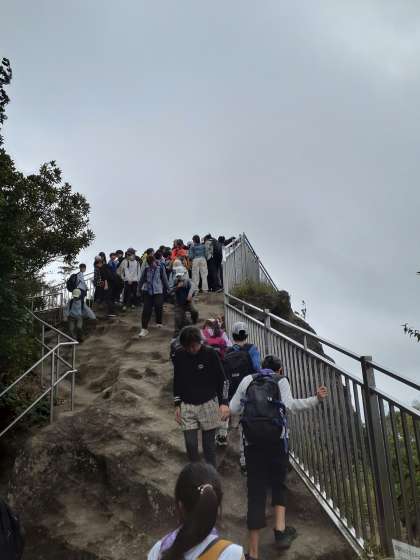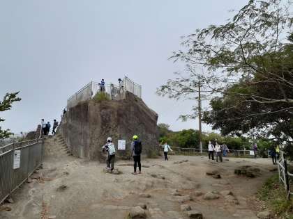 ハイキングのメインになる、地獄の覗きに到着。岩を登って見下ろしていました。