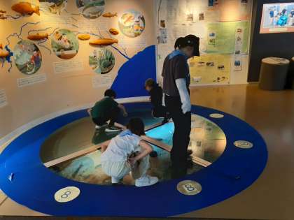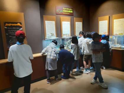 お弁当を食べた後は、相模原にある、ふれあい科学館を見学しました。入り口では、鮎がたくさん泳いでいました。