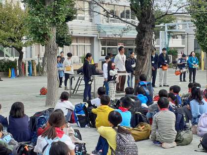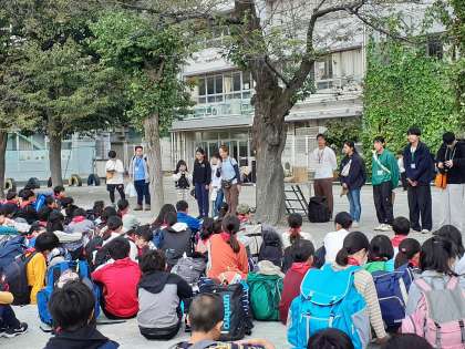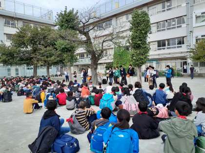 5年生は今日から3日間、八ヶ岳自然宿泊体験です。まずは、校庭で出発式を行い、引率する方々と挨拶をしました。2日後、戻ってきたときに、みんなが「楽しかった!」と言えるように、回りの人のことも考えて行動することを確認しました。