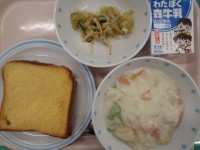 ・豆乳フレンチトースト ・クリームシチュー ・ごぼうチップスサラダ ・牛乳卵(青...