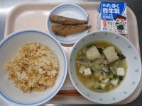 【12月19日(金)献立】・そぼろごはん ・めひかりの竜田揚げ ・きりたんぽ汁 ・牛乳毎月19日は食育の日なので、今日は「日本味めぐり」で秋田県の郷土料理でした。ごぼう(青森県) しょうが(高知県) ...