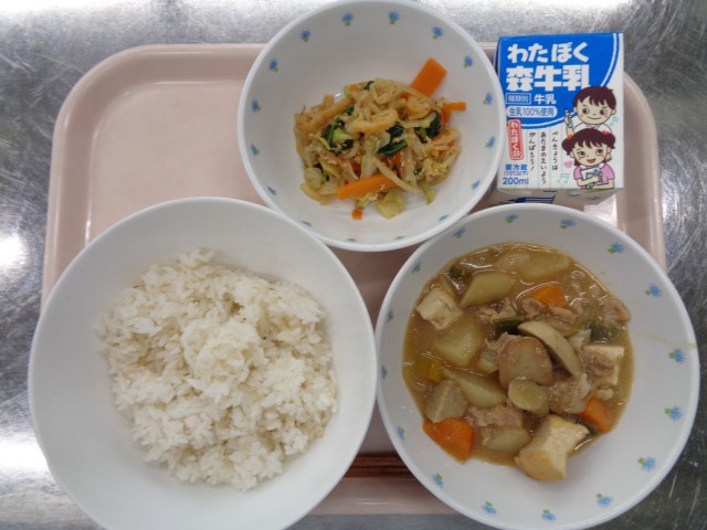 ・ごはん ・揚げ里芋のみそ煮 ・きつね和え ・牛乳