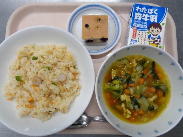 ・キャロットピラフ ・1010スープ ・ブルーベリーケーキ ・牛乳