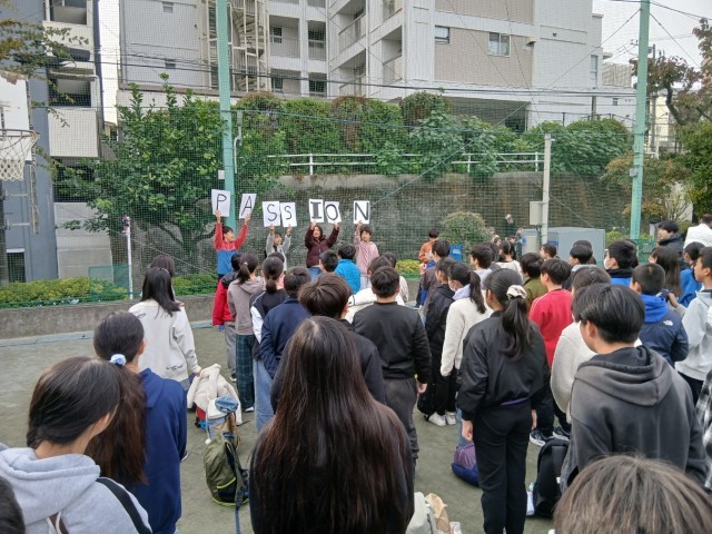 今日から3日間6年生の宿泊学習です。出発式をしていよいよ出発です。スローガンはPASSIONだそうです。