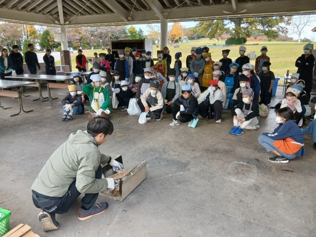 これから飯盒炊爨です。まずは田井さんから詳しく作り方を教えてもらいます。