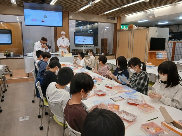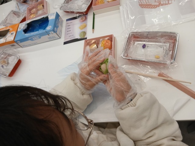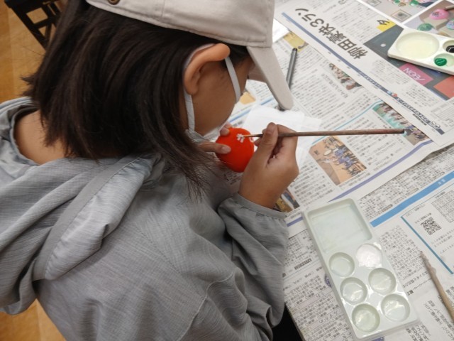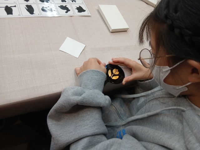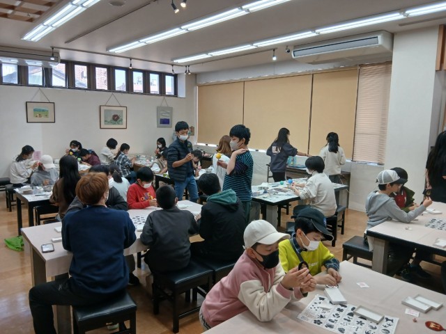 物産館では金箔貼りや、加賀八幡起き上がり、和菓子作りの体験をしました。