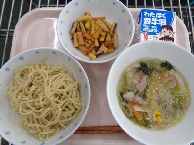 ・野菜たっぷり塩ラーメン ・キャンディポテト ・牛乳