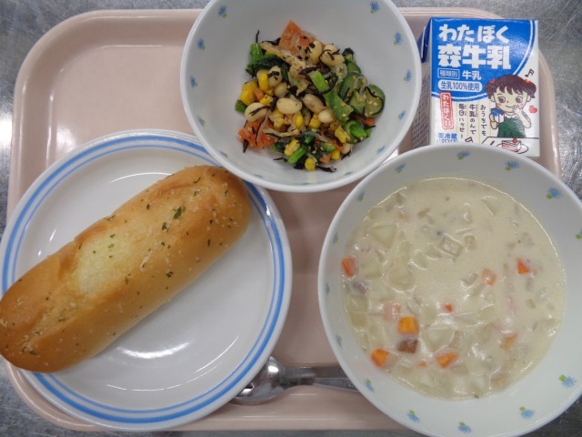 ・ガーリックフランス ・バランスサラダ ・クラムチャウダー ・牛乳