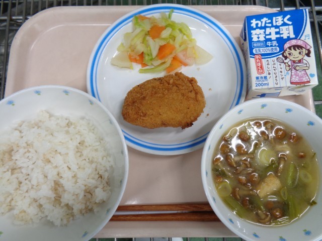 ・ごはん ・おみくじコロッケ ・かぶの和え物 ・なめこのみそ汁 ・牛乳