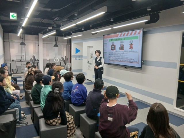 煙コーナーでは、閉じ込められた部屋から姿勢を低くして避難体験をしました。「おかしもち」の「ち」、「ちらばらない」が課題でした。