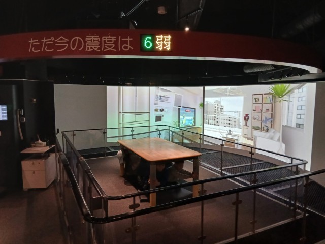 地震コーナーでは、震度6弱を体験しました。いつどこで地震が起きるか分かりません。家族の約束を決めておくことが大切です。