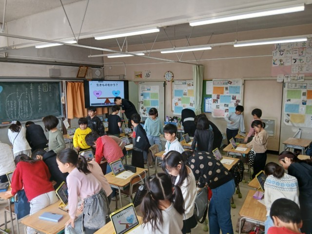 生きものをかう?生活科で虫を飼うことに賛成か反対か、自分の立場を明確にして話し合いました。