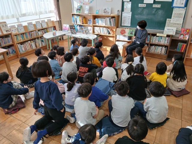 今日は2年生に「だいくとおにろく」を保護者の方が読んでくださいました。