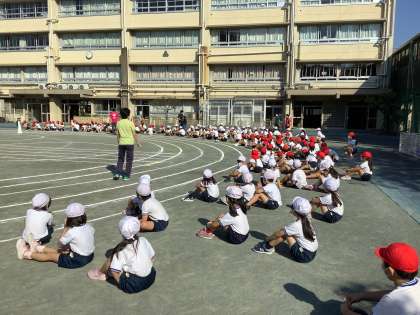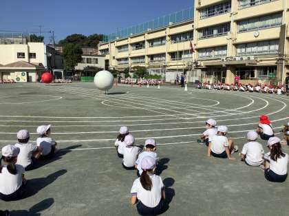 運動会の全校練習 公開日 2021/10/05 更新日 2021/10/05 1年 今日は、1時間目から練習がありました。 自分の席の確認をして、全校競技の大玉送りを実際にやりました。 初めて大玉を触って、大喜びの1年生でした。 いいね(0)