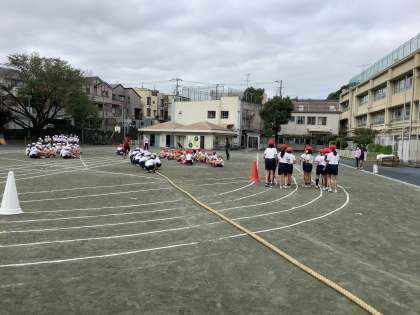いよいよ運動会まで2日と迫りました。今日は団体競技の練習です。勝敗が明確であるからこそ、練習から真剣な表情で取り組みました。今日は赤組、白組、どちらも譲らず引き分けという結果に・・・。当日の子供たちの勇姿が楽しみです。