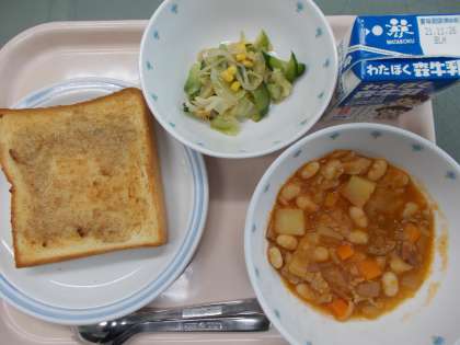 セサミトースト ポークビーンズ コーンサラダ