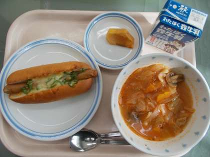 チーズチリドッグ 野菜たっぷりスープ 柿