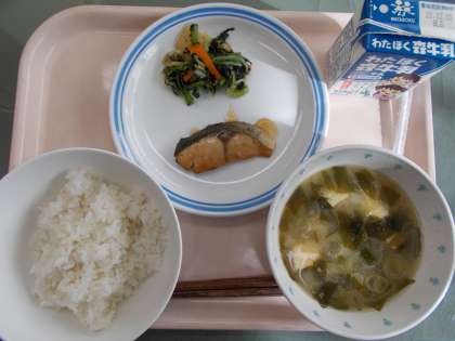 ごはん ぶりの照り焼き 磯和え ごま入りみそ汁