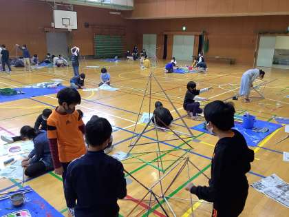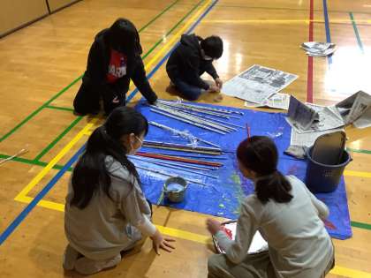 展覧会に向け、学年で共同制作を行いました。クラスの枠を超え、グループでの制作です。新聞紙から作った1本の棒を幾重にも合わせ、立体的な作品を生み出しました。当日は体育館のいたるところで見られ、展覧会を彩ってくれることと思います。多くの保護者の皆様の参観を心待ちにしています。